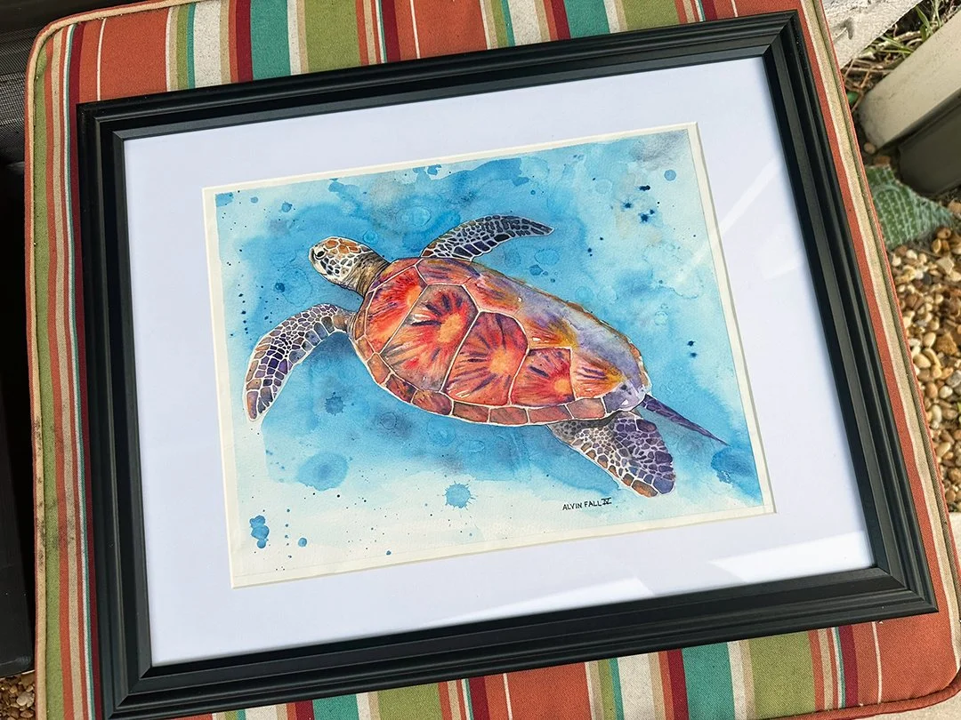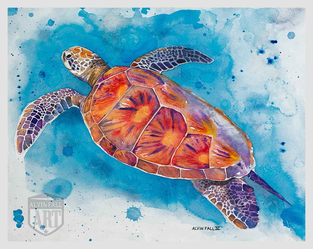 "Sea Turtle 1": Watercolor; 11in x 14in, (2025)